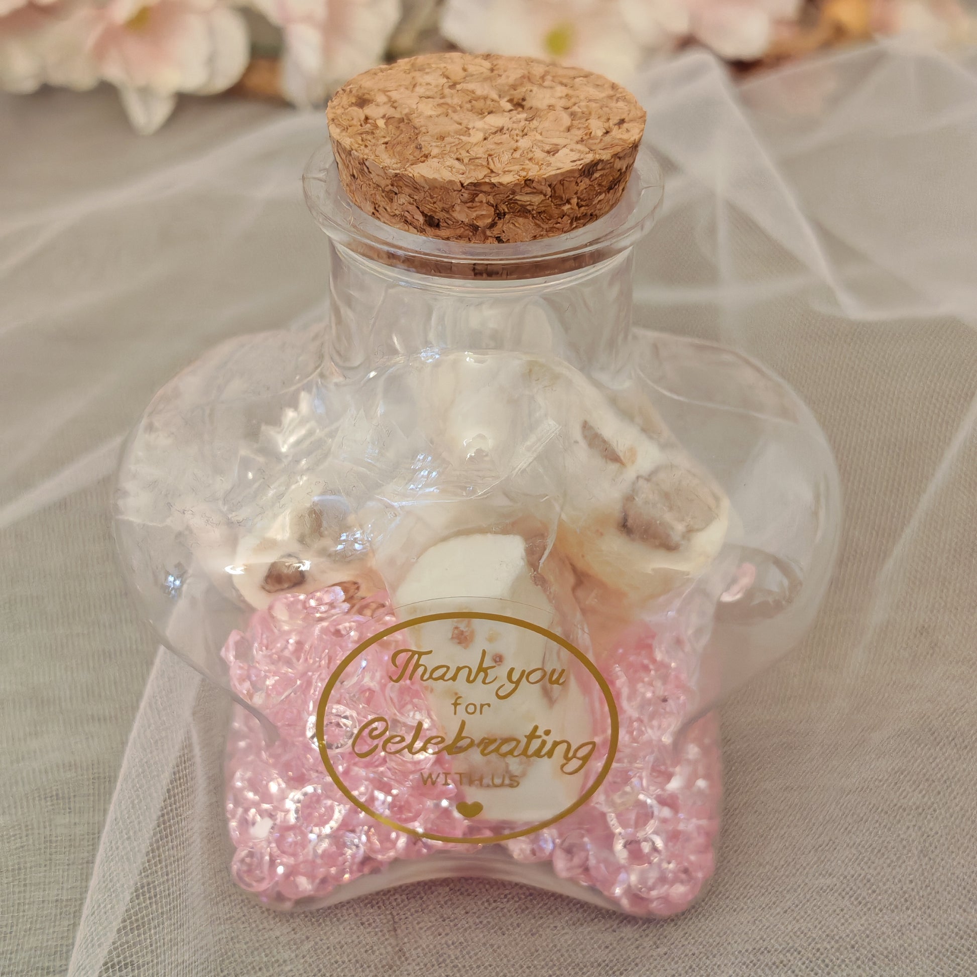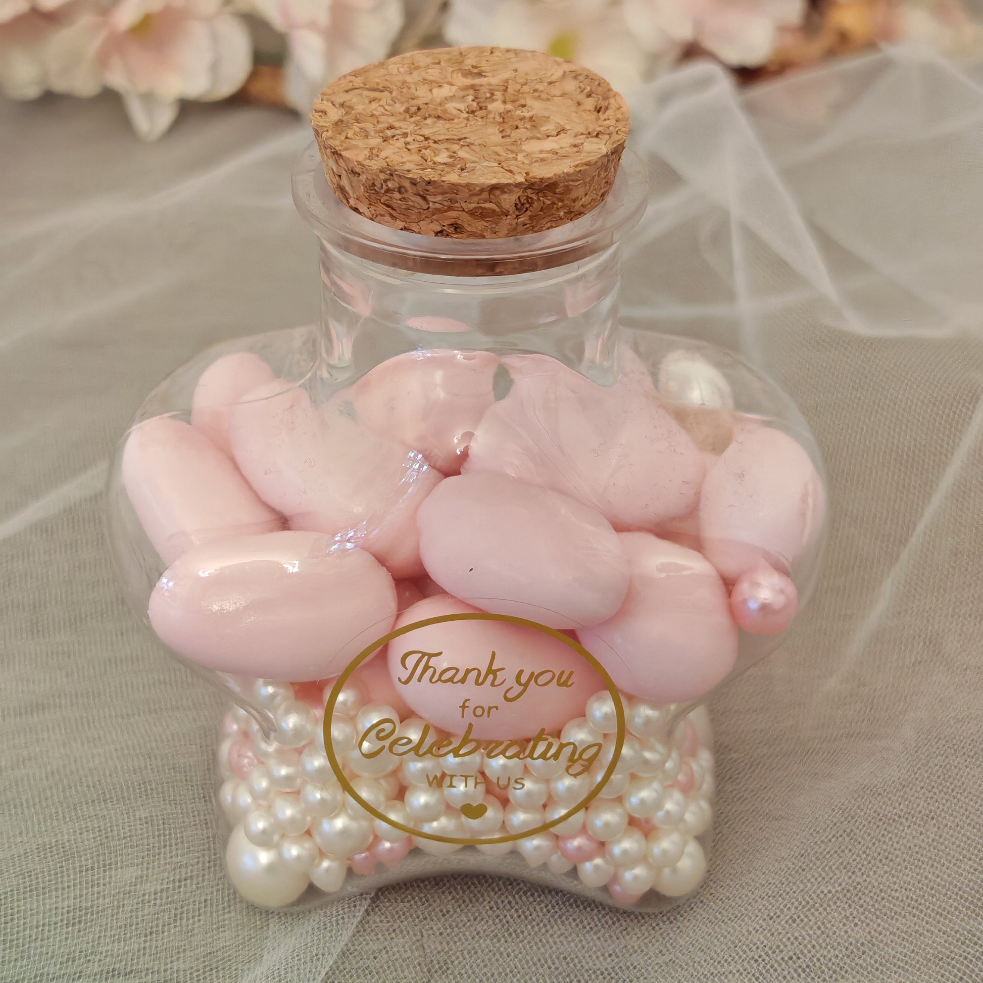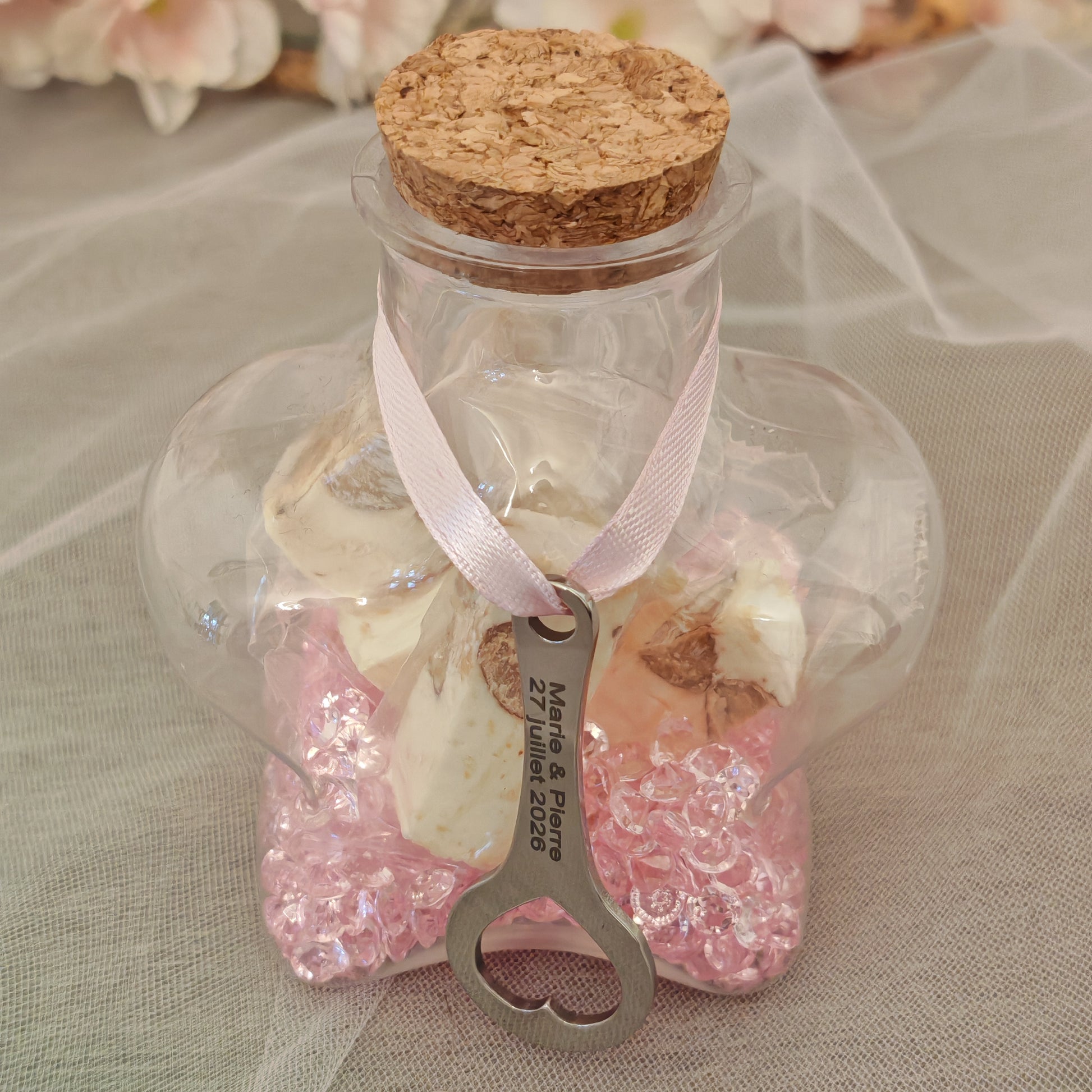 Pour ma table pour le Jour de l'An, on était une vingtaine de personnes. Du coup, j'ai trouvé ça sympa de faire un petit cadeau pour les invités. J'ai choisi les mini Flacons en verre avec des dragées. Super mignon !!